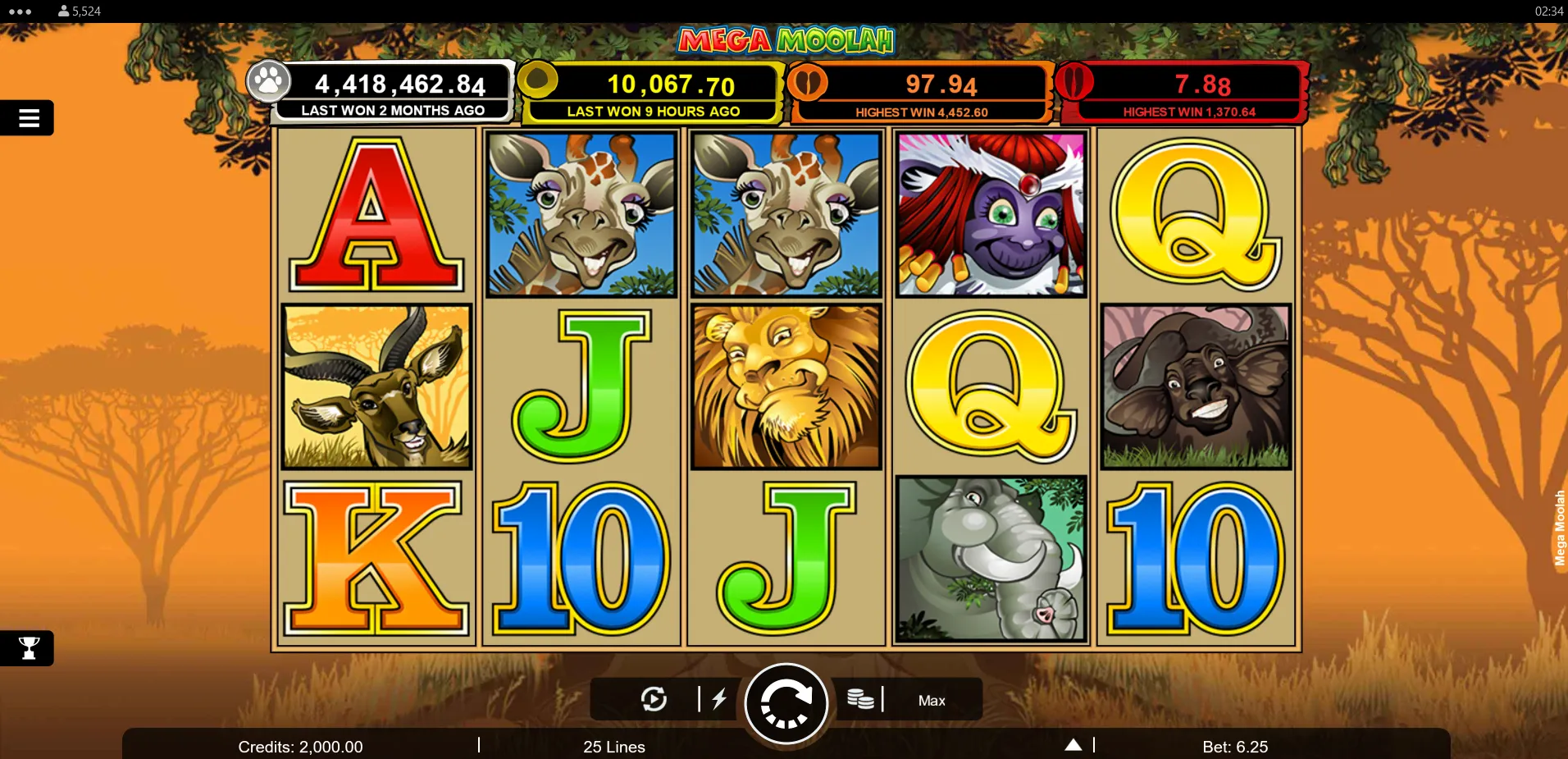 - Alle Gewinnlinien aktivieren. Nach unseren Mega Moolah Erfahrungen, sollten Spieler nach ein wenig Übung bei diesem Spielautomaten alle Gewinnlinien aktivieren um so auch die Chancen auf Jackpots zu erhöhen, auch wenn es ggf. den Spielern zunächst mehr Budget kostet.
